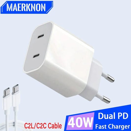 Schnellladegerät 40W Dual PD USB-C für Smartphones