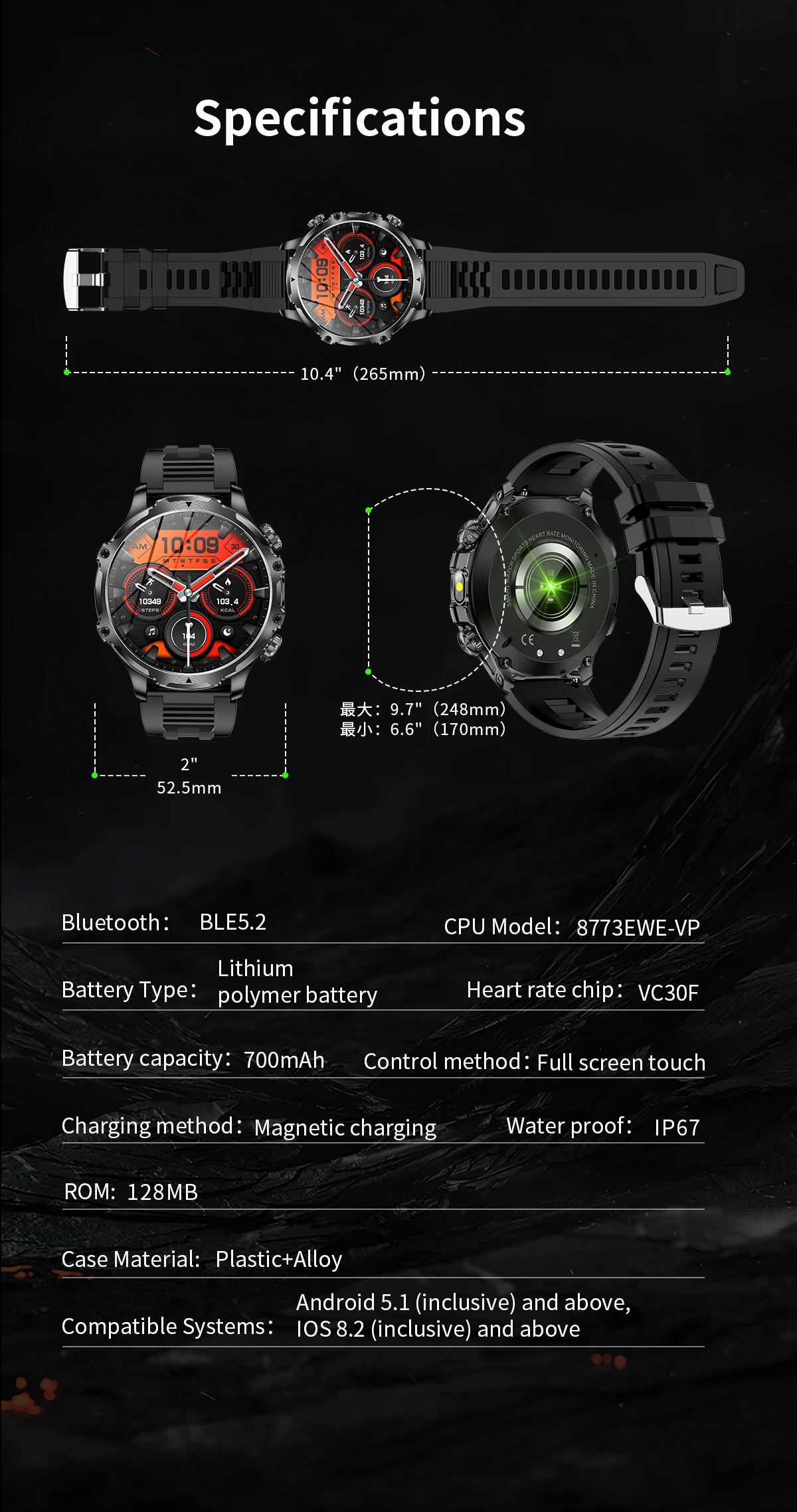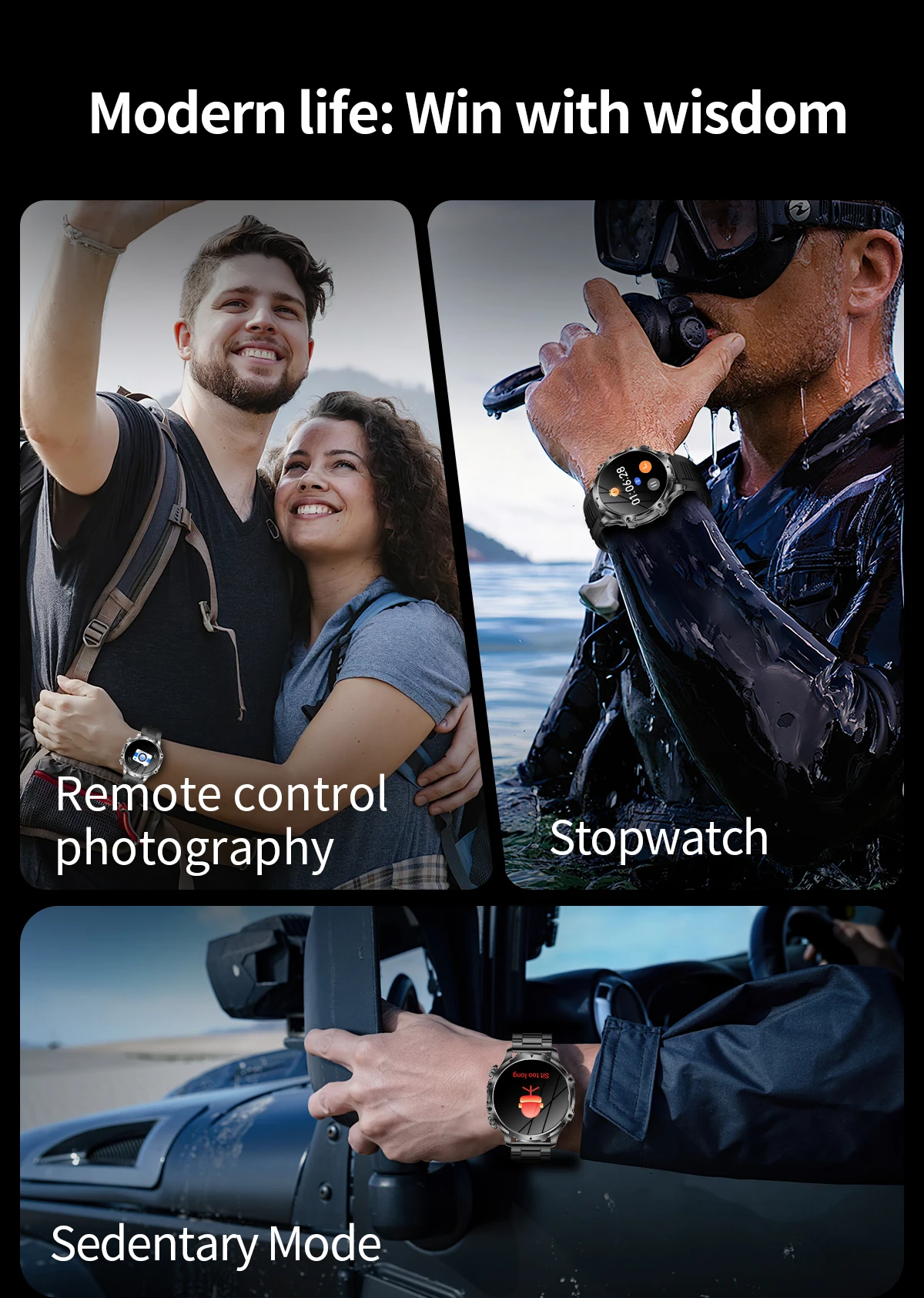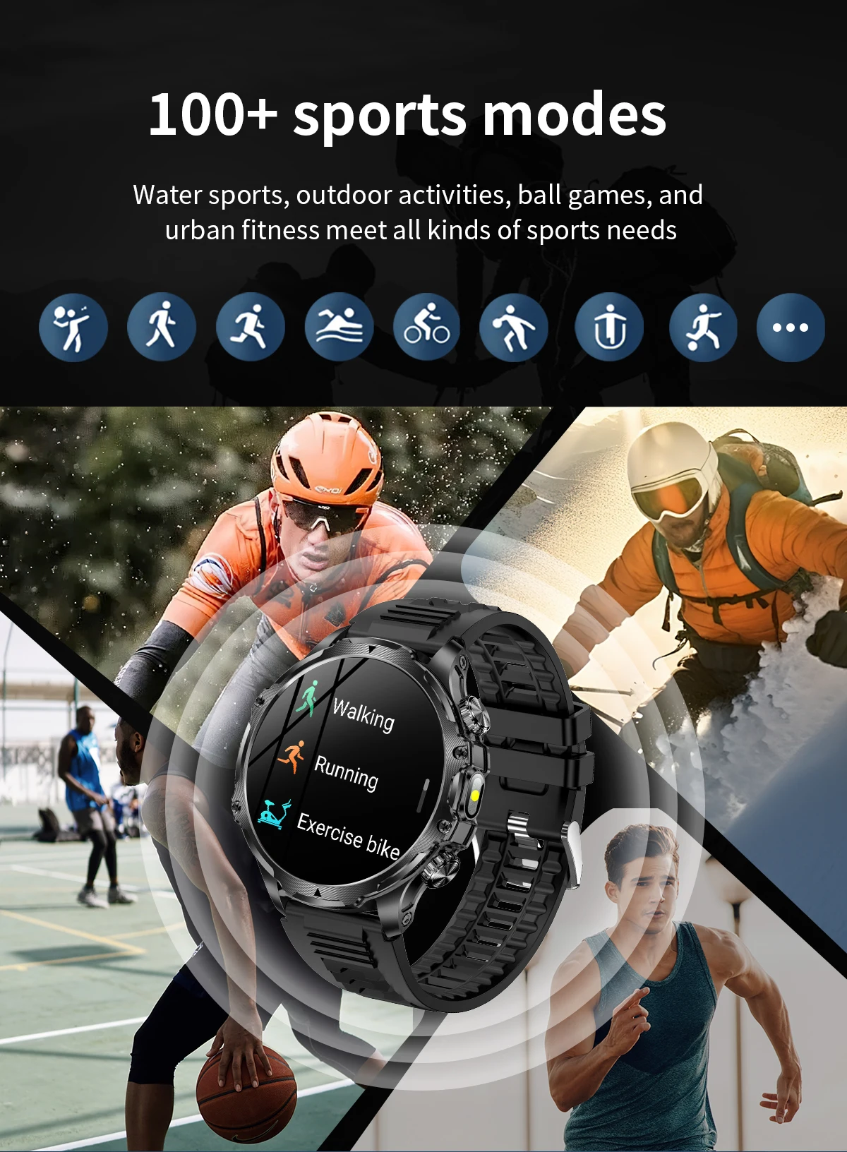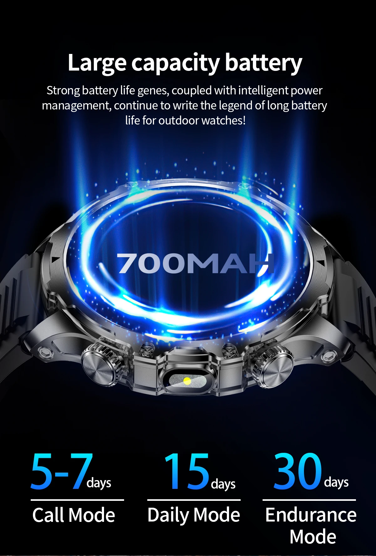 Entdecken Sie die AK75 Outdoor Smartwatch, die perfekt für aktive Lebensstile geeignet ist. Mit einem großen 700mAh Akku bietet diese Uhr eine beeindruckende Standby-Zeit von bis zu 40 Tagen und eine Nutzungsdauer von etwa 7 bis 10 Tagen. Der 1,9 Zoll IPS-Bildschirm ist auch bei Sonnenlicht hell und sorgt für eine klare Darstellung.